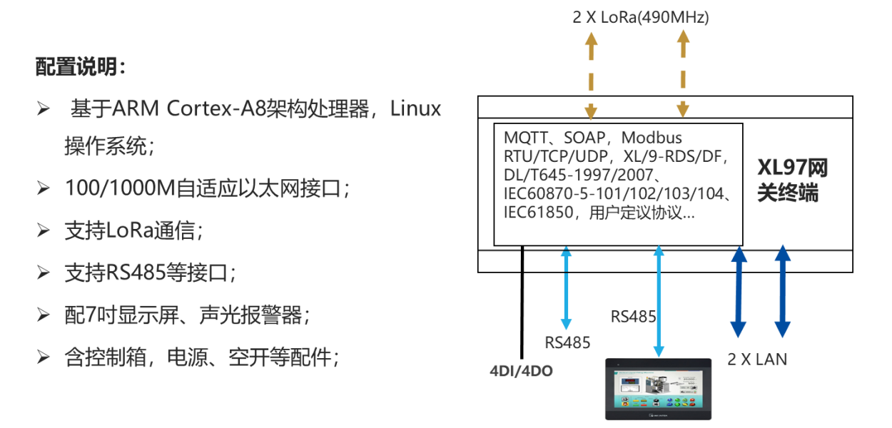 XL971E67網關終端,是集成XL95物聯網關,7吋顯示屏、聲光報警器,及電源、開關、控制箱等等的物聯網接收終端,讓客戶安裝使用更加方便。