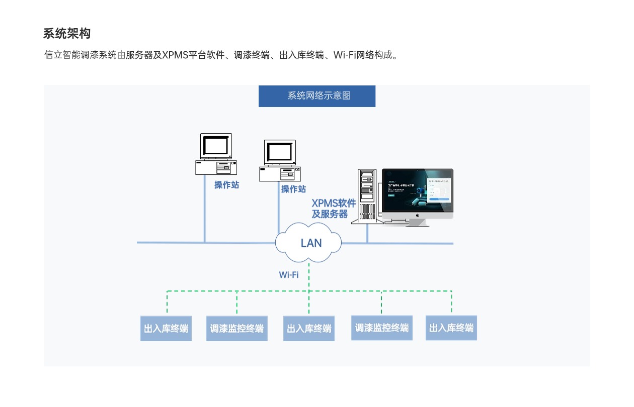 信立調(diào)漆管控系統(tǒng)XPMS,應(yīng)用工業(yè)物聯(lián)網(wǎng)技術(shù)、數(shù)據(jù)庫及智能化平臺軟件,標(biāo)準(zhǔn)、規(guī)范、指導(dǎo)、監(jiān)管調(diào)漆過程,實現(xiàn)調(diào)漆操作智能化、簡單化,有效提升調(diào)漆質(zhì)量、減少漆料浪費,降低人為因素風(fēng)險,是一套智能化的調(diào)漆、制漆管控系統(tǒng)。
