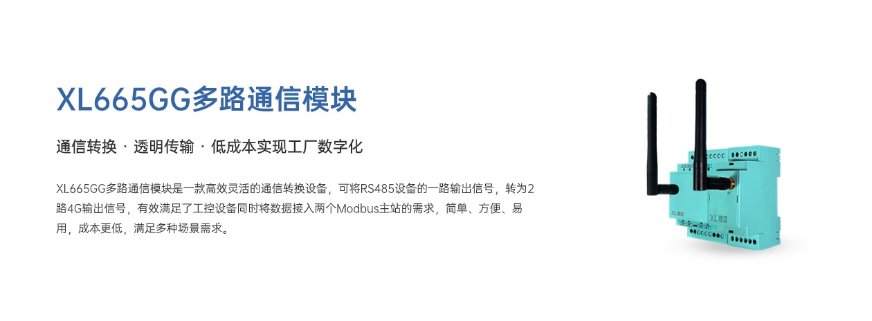 XL665GG多路通信模塊是一款高效靈活的通信轉換設備,可將RS485設備的一路輸出信號,轉為2路4G輸出信號,有效滿足了工控設備同時將數據接入兩個Modbus主站的需求,簡單、方便、易用,成本更低,滿足多種場景需求。