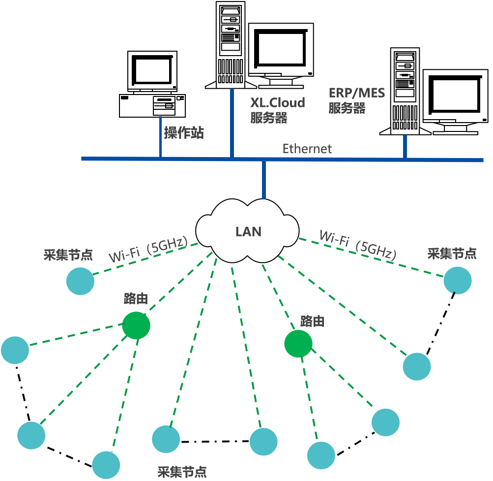 用戶可選第三方生產(chǎn)管控平臺(tái),直接從XL90網(wǎng)關(guān),或采集節(jié)點(diǎn)獲取數(shù)據(jù)