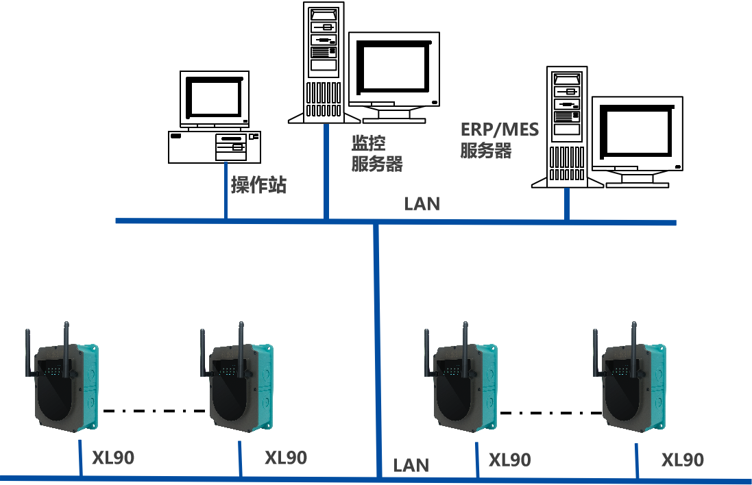 XL90物聯(lián)網(wǎng)關(guān),是系統(tǒng)的核心,從XL60上讀取數(shù)據(jù),進(jìn)行協(xié)議轉(zhuǎn)換、通訊處理,通過企業(yè)內(nèi)部LAN,推送數(shù)據(jù)至企業(yè)生產(chǎn)監(jiān)控平臺(tái)