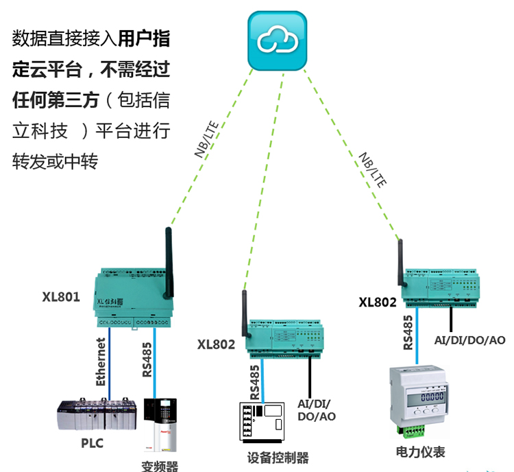4、支持XL/9-IoT協議,推送數據至MS SQL,MY SQL,ORACLE等數據庫,可設計開發客戶指定的通信協議;