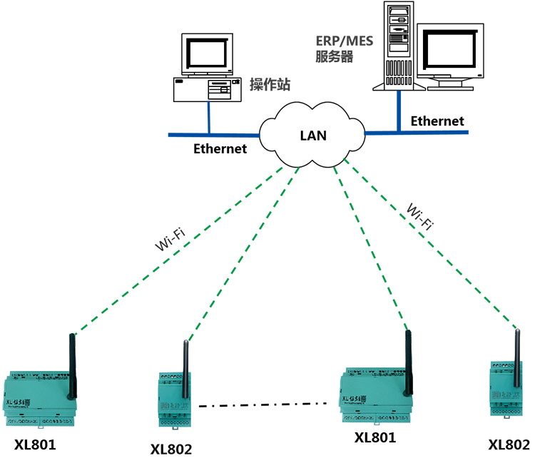 XL80X選擇Wi-Fi通信方式,適用于工廠車間內的數據采集和無線傳輸,且有局域網Wi-Fi覆蓋的區域。