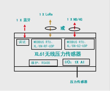XL61無線壓力傳感器應用方案一:拓撲圖↓
