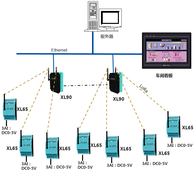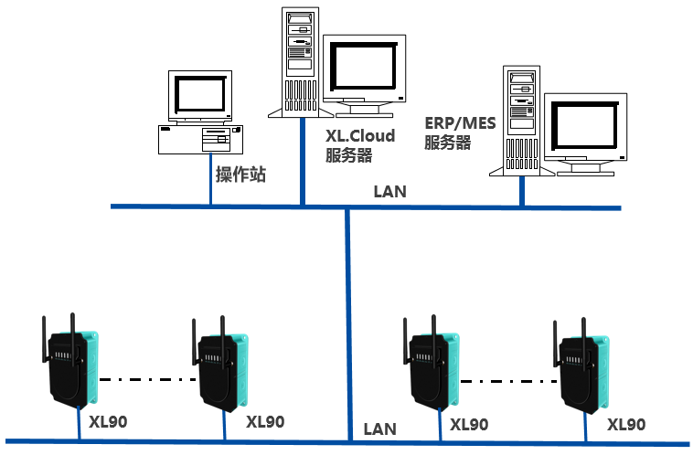 基于XIoT技術的貼片機電池電壓數據采集系統,平臺由1套XL.Cloud軟件、1臺監控服務器構成;通信網絡多臺XL90物聯網關,及LAN構成。