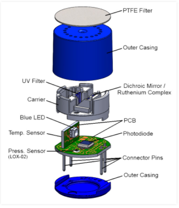 LOX-02熒光氧傳感器的一個關鍵優勢是,該技術不含鉛成分,暴露在氧氣中不會耗盡熒光染料。