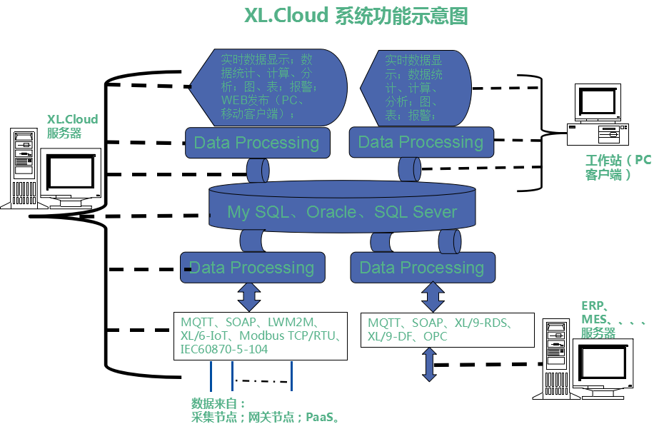 XL90物聯網關提供多種通信接口,和豐富的通信協議,和第三方軟件平臺交互數據。