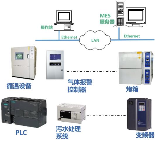 工廠的各種類生產設備、生產系統及監控系統,需要通過廠內LAN接入MES
