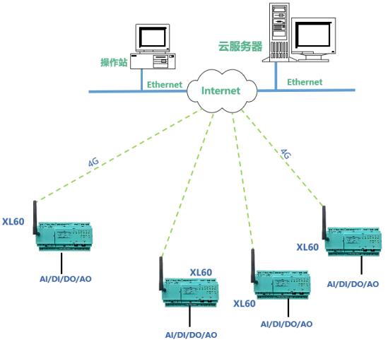 XL60無線采集裝置,由一臺(tái)主機(jī)模塊和多臺(tái)I/O模塊組合而成。可采集現(xiàn)場變送儀表的電流、電壓信號(hào),控制器輔助接點(diǎn)信號(hào),接收上位機(jī)下發(fā)的控制指令,輸出電流、電壓、繼電接點(diǎn)等控制信號(hào)。