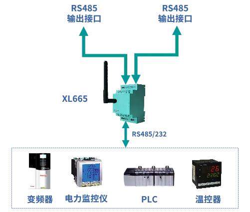 1、經由XL665無線轉換器輸出的RS485信號,可接入任何支持RS485及儀表通信協議的設備;