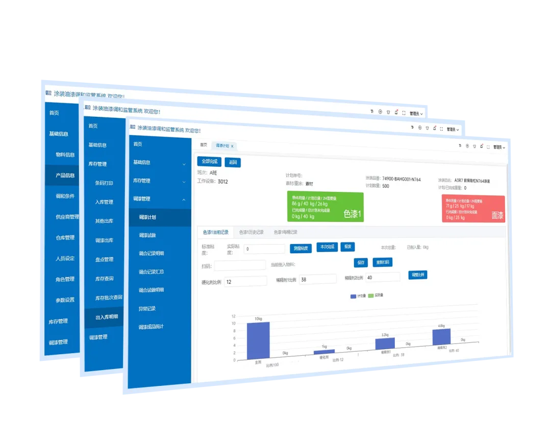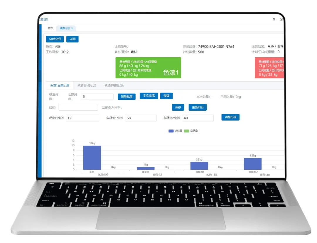 系統指導操作員按照標準工藝流程進行調和,實時監控調漆過程以防止錯誤操作。